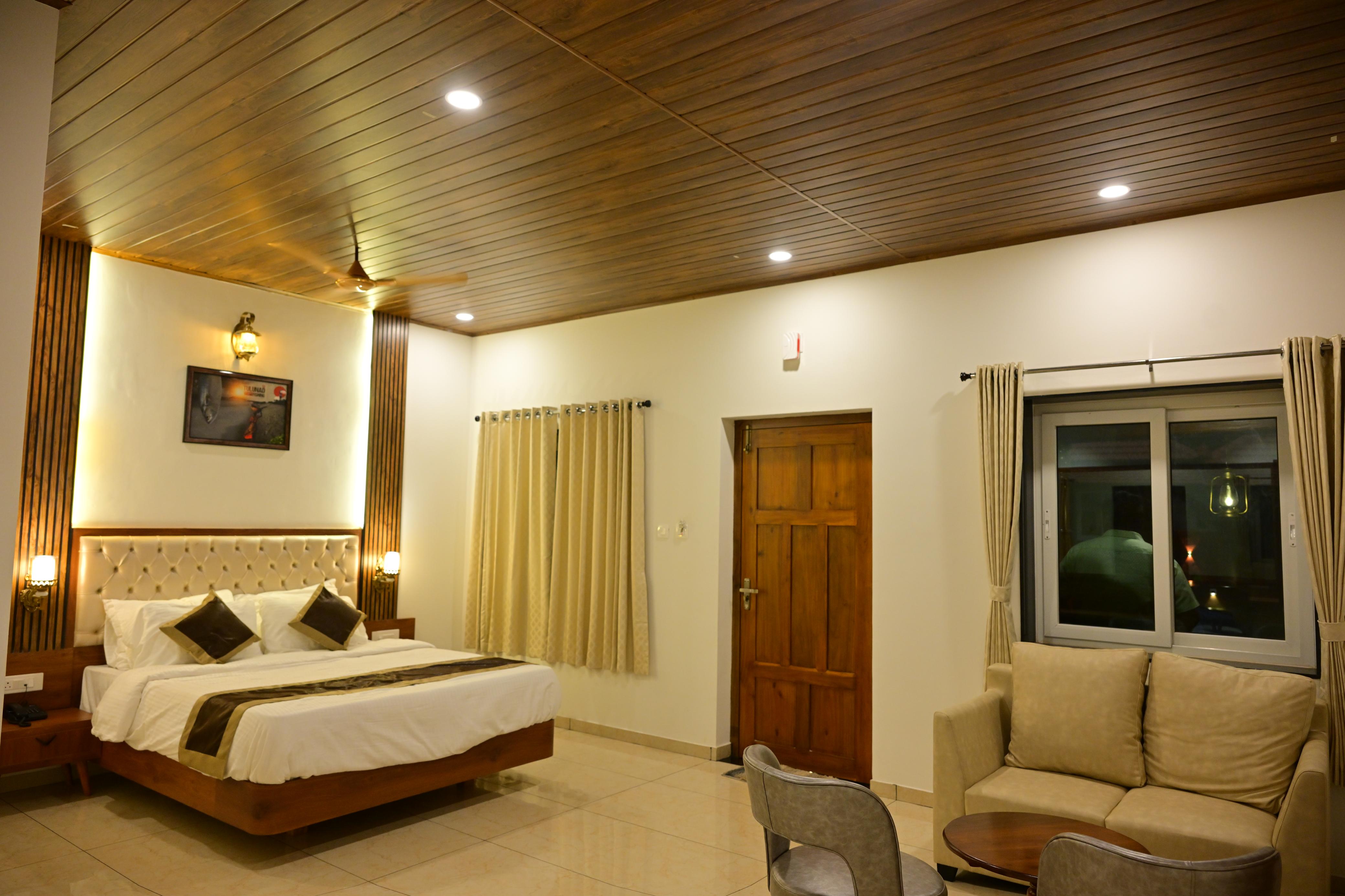 The Suite Room at Majestic Villa, Udupi offers a luxurious and spacious stay with elegant interiors and a private balcony overlooking the pool or garden. It includes a separate dining area, spa bath, and air conditioning for enhanced comfort. Ideal for guests seeking extra space and sophistication, the suite combines style with modern amenities for a premium experience.